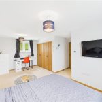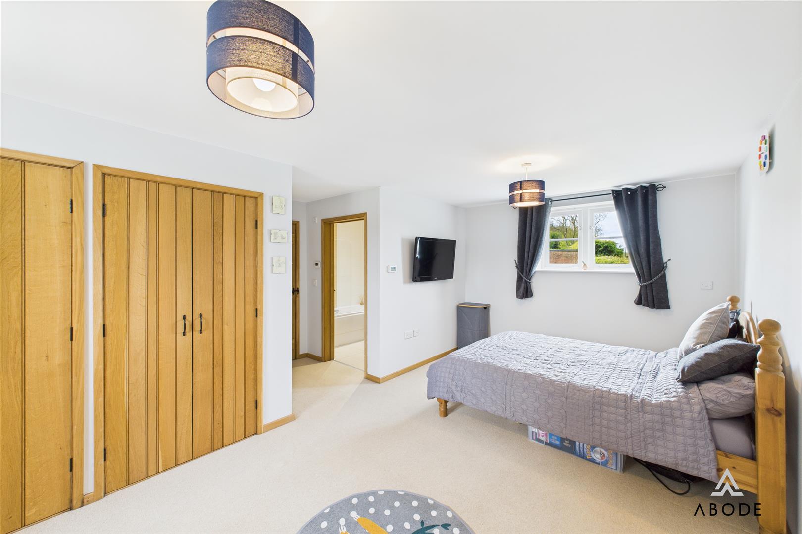 The ground floor also offers a large double bedroom with fitted storage, dual-aspect views to the front and rear, and a well-appointed en-suite bathroom. A further double bedroom and a guest cloakroom complete the ground floor accommodation.