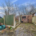 Shared side entry down to the rear garden offering a yard and lawn with garden shed.