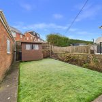 Base level units, stainless steel sink with draining board, space and plumbing for a cooker and washing machine. Partially tiled walls, door leading out into the garden, storage cupboard, central heating radiator and two UPVC double glazed windows to the rear elevation.