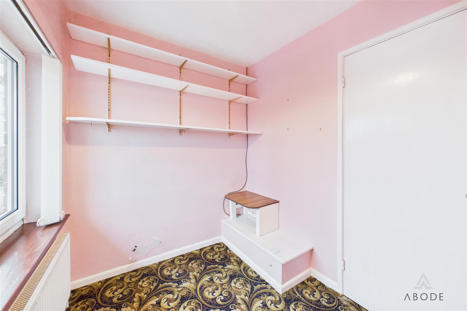 UPVC double glazed window to the side elevation, loft access and storage cupboard.