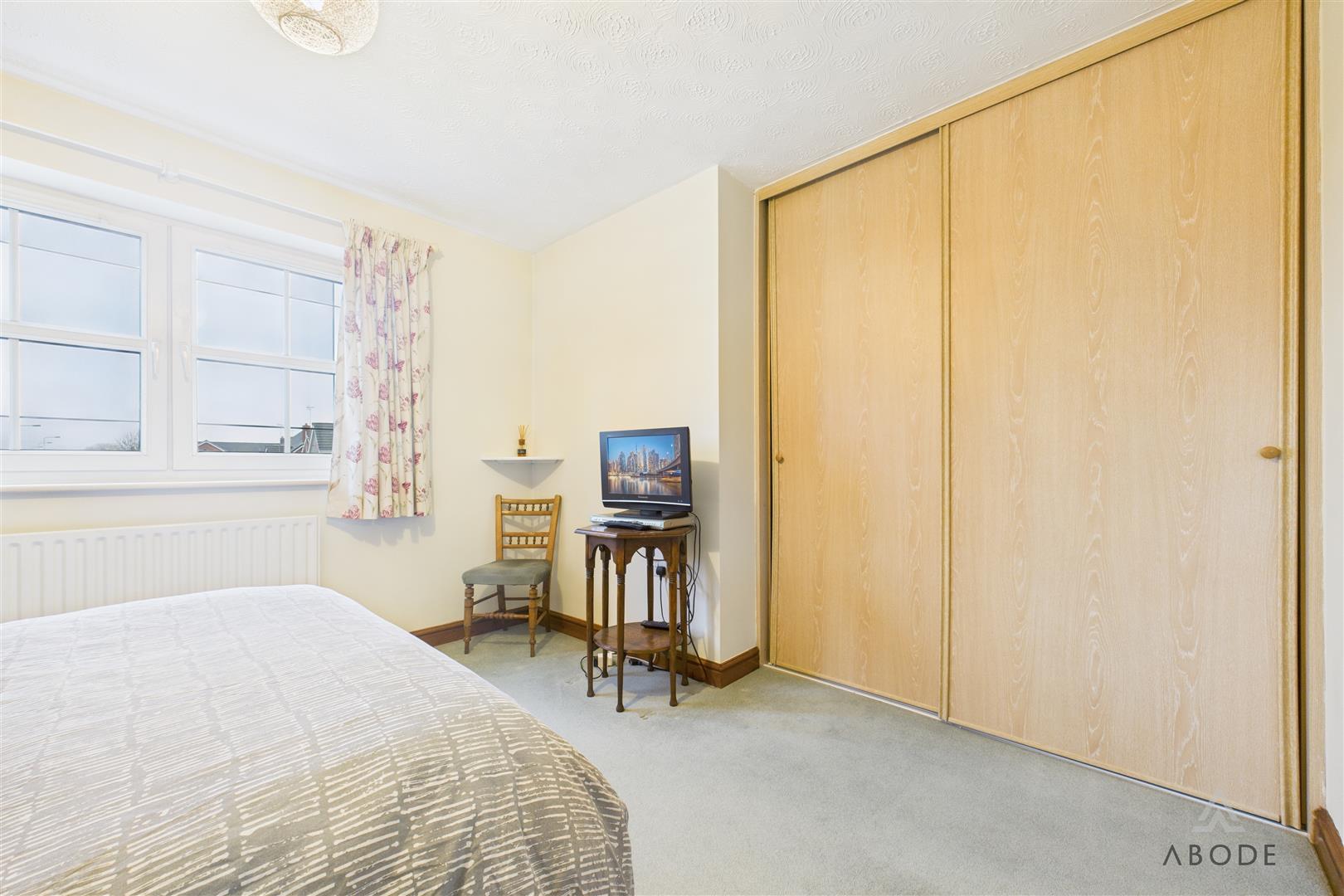 A double bedroom with a UPVC double glazed window to the front elevation, radiator, television point, and built-in double wardrobe.