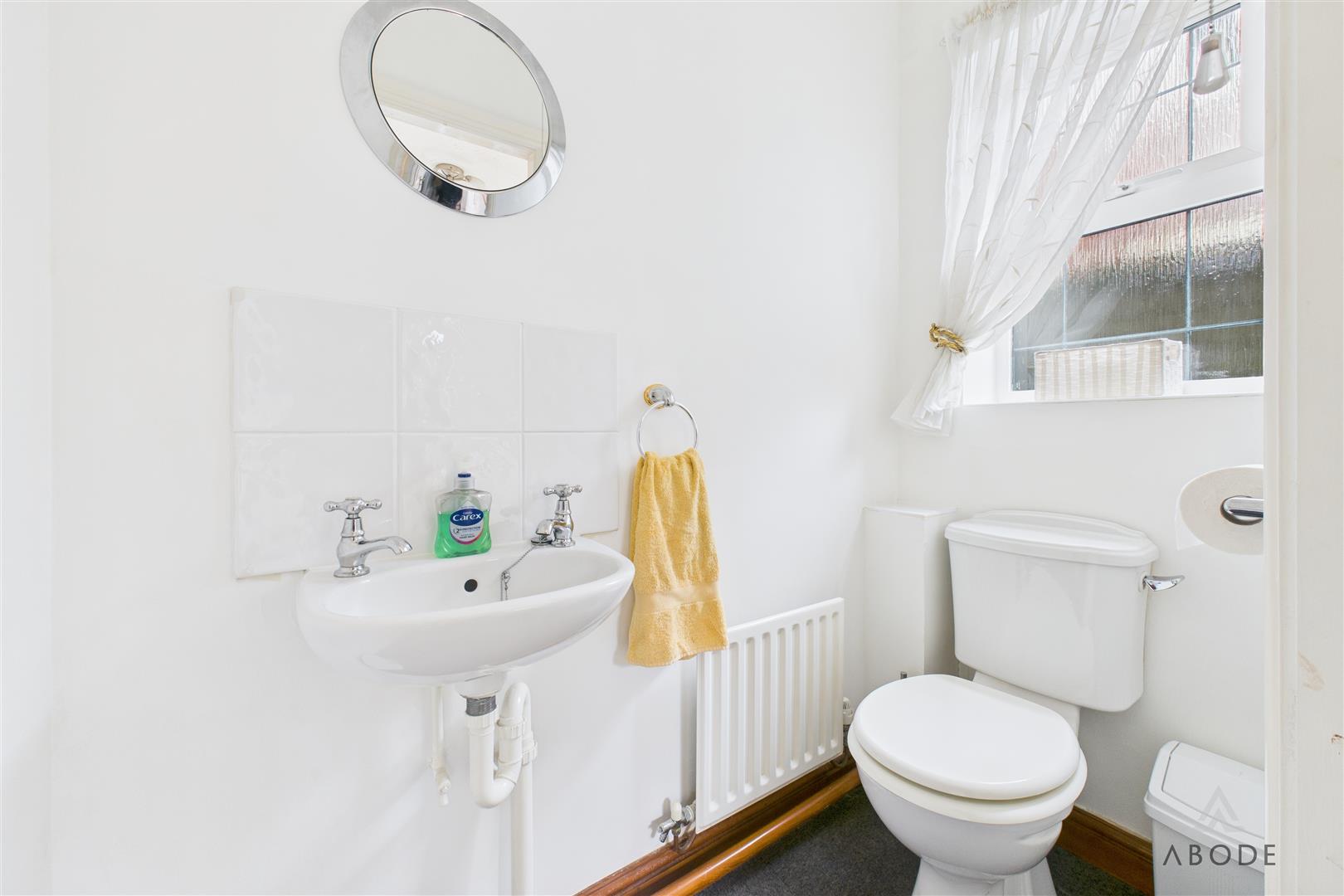 Featuring a low-level WC, wash hand basin, radiator, and a UPVC double glazed window to the side elevation.