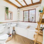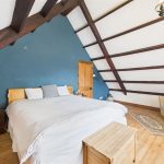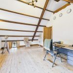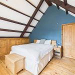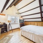 The first floor is home to two generous double bedrooms, both offering impressive proportions. Each room enjoys excellent natural light, with pitched ceilings, exposed timber beams, and solid timber flooring, adding to the charm and character of the home.