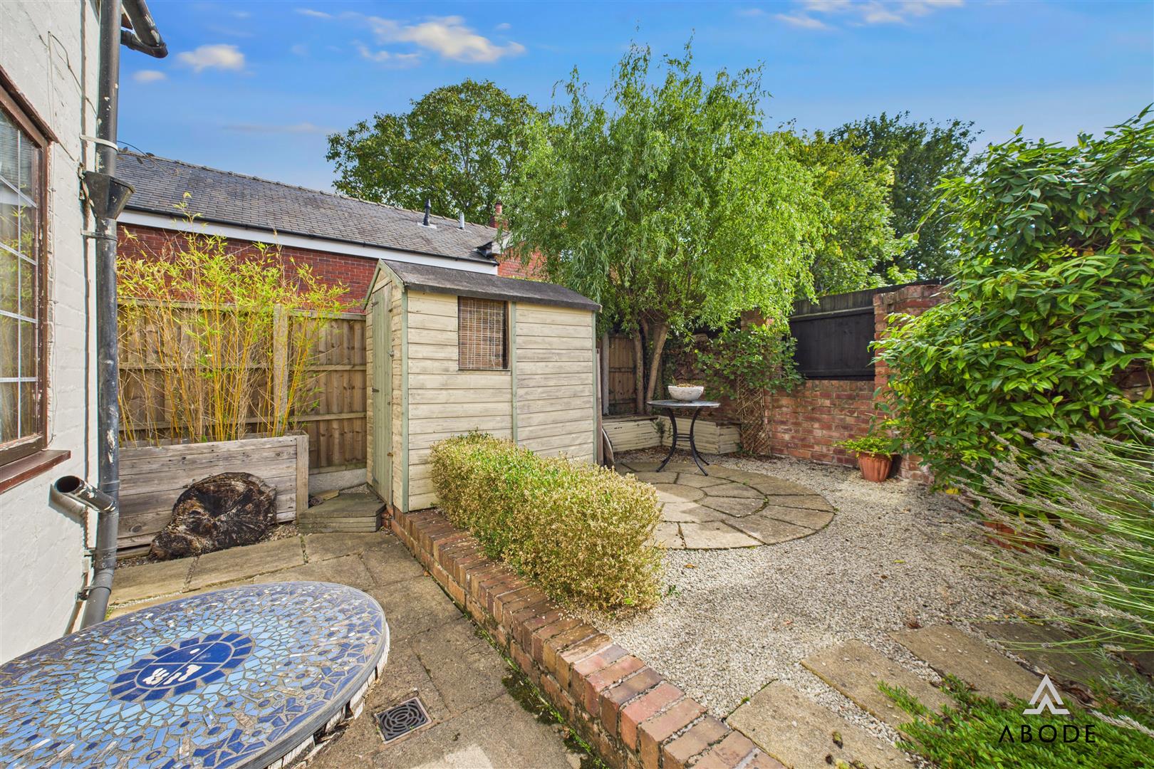 Outside, the rear garden offers a private and established space with a patio area ideal for seating, a useful storage shed, and mature planting that enhances the setting.