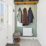Entrance door into the hall with a tiled floor, radiator and doors to -