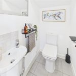 Enclosed shower, low flush WC, wash hand basin, radiator and UPVC double glazed window.