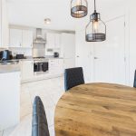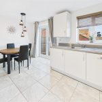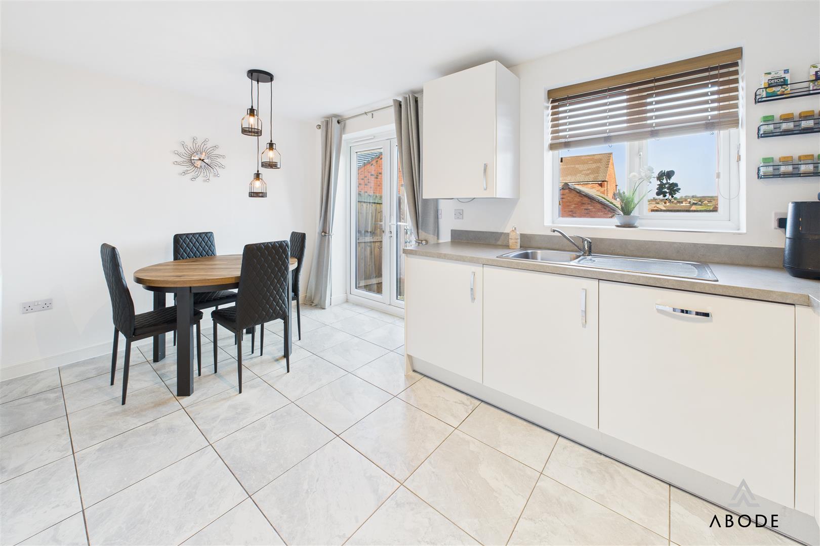 Fitted wall mounted, base and drawer units with work surfaces and a sink and drainer unit. Fitted electric oven with gas hob and extractor hood, integrated dishwasher, washer dryer and fridge freezer, tiled floor, radiator, storage cupboard and UPVC double glaze window and double doors onto the garden.