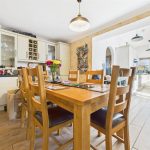 With two sets of UPVC double-glazed windows to the rear and side elevations, three UPVC double-glazed velux windows to ceiling, the kitchen features a range of matching base and eye-level storage cupboards and drawers with granite-effect drop-edge preparation work surfaces. A range of integrated appliances includes oven, grill, electric hob, built-in extractor, stainless steel sink and drainer with mixer tap, wine cooler, smoke alarm, dishwasher, fridge, freezer, and an internal opening leading to: