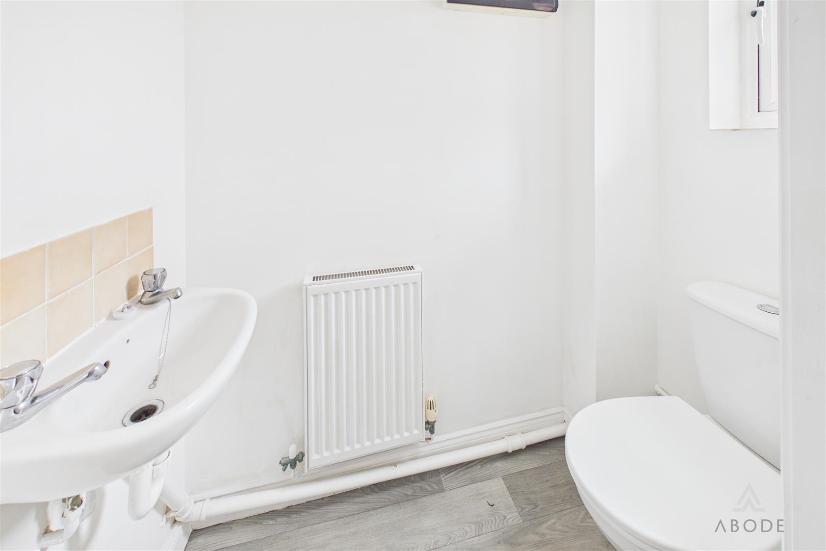 Low flush wc, wash hand basin, upvc double glazed window and radiator.