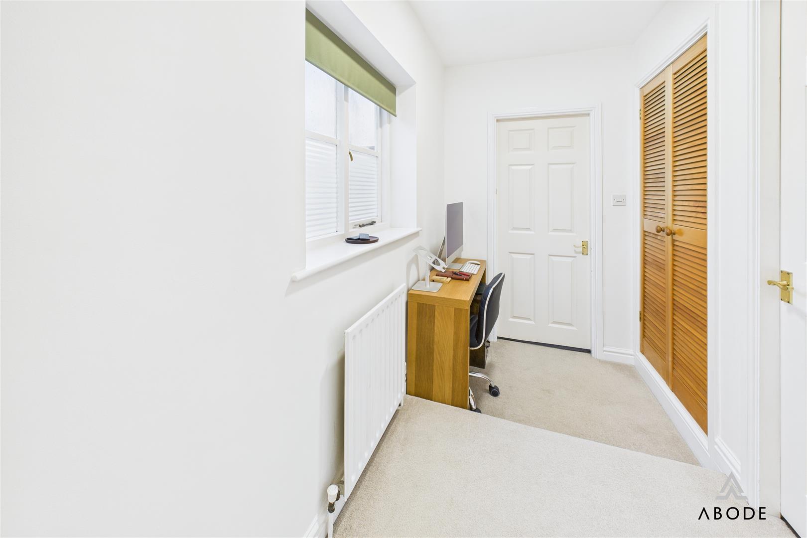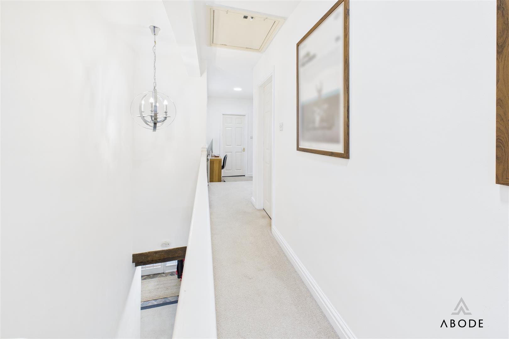 Good size landing with study area, two windows, two radiators, loft access with pull down ladder, storage cupboard and doors to -