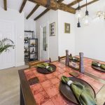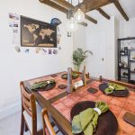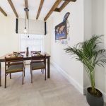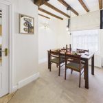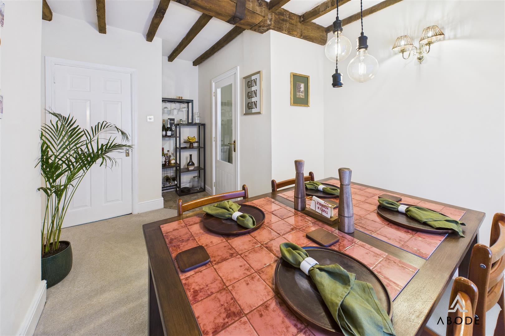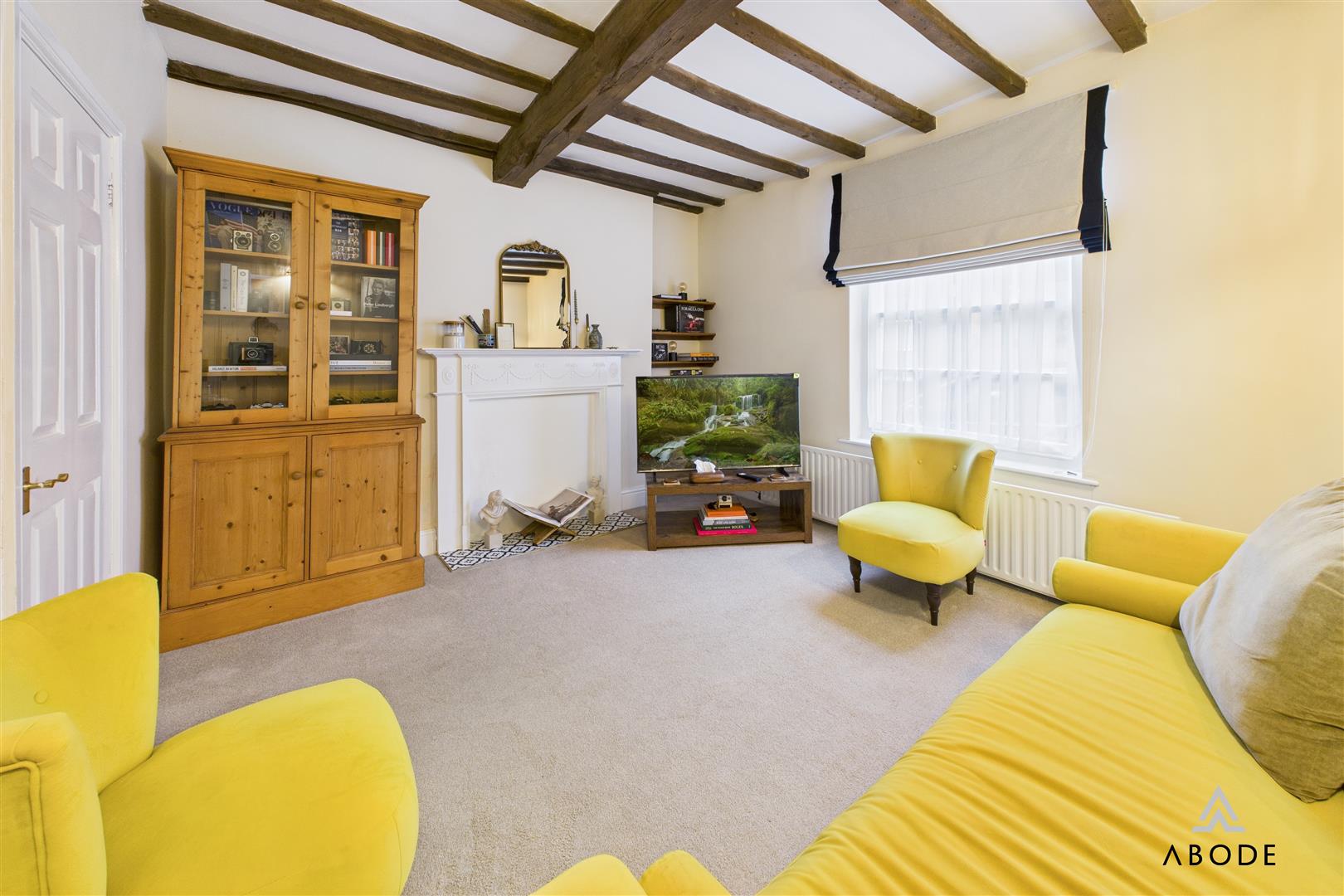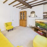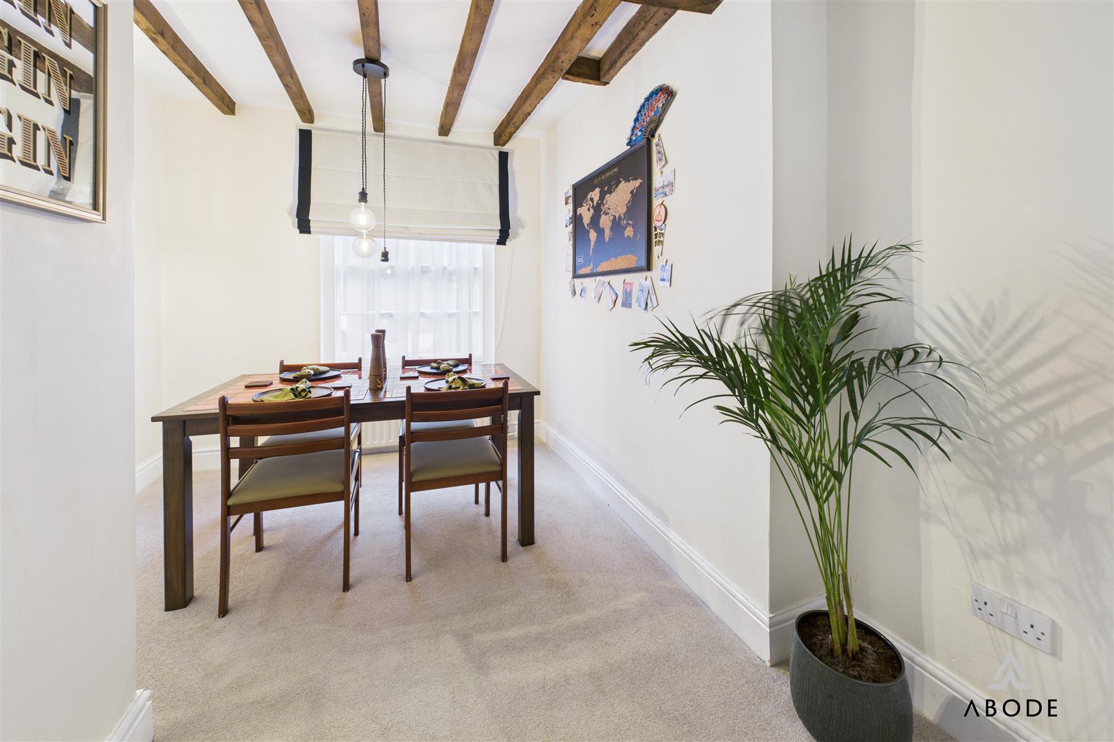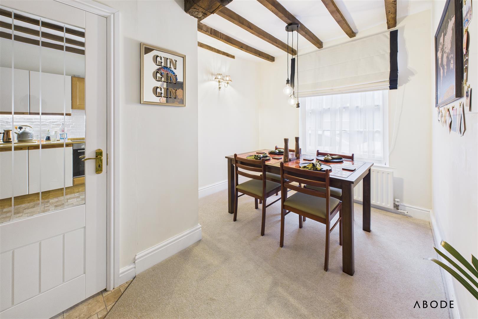 Exposed beamed ceiling, sash window to the front elevation, radiator and half glazed door into the kitchen.