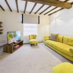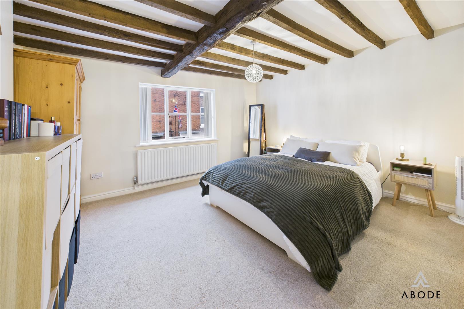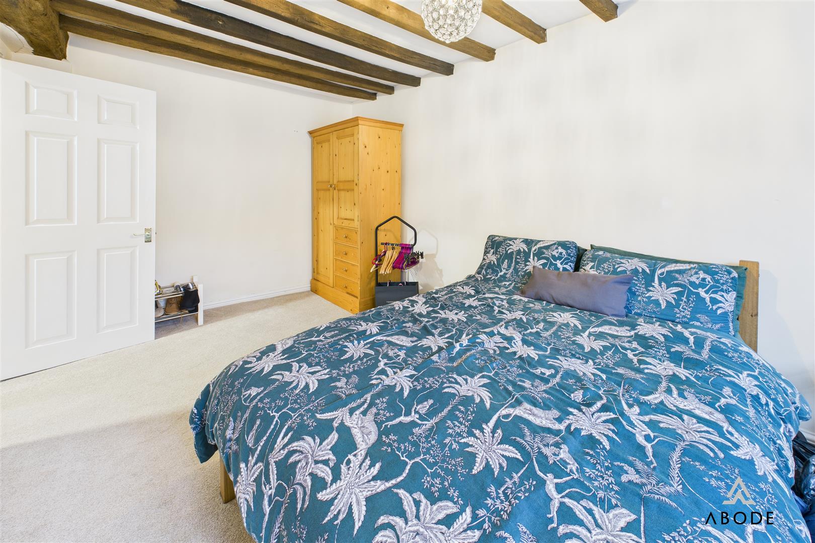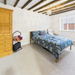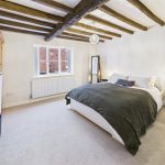 Exposed beamed ceiling, radiator and window to the front elevation.