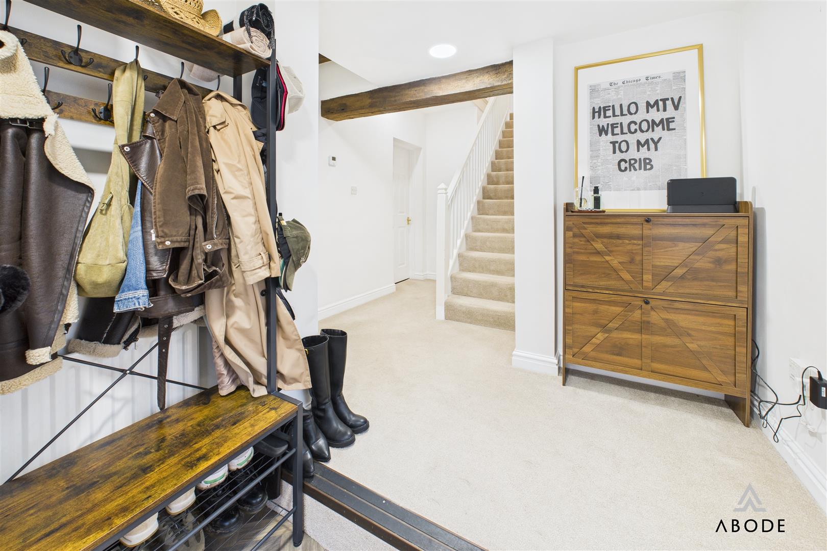 Entrance door into the hallway with side glazed panel and double glazed window to the side elevation. Stairs to the first floor and doors to -