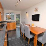 The fitted breakfast kitchen has a feature tiled floor which reflects the kickboard lighting, plus dual aspect windows providing natural light and a double-glazed door to the garden. There is a range of base and eye level units, fitted granite effect work surfaces with an inset sink unit, fitted electric hob with extractor over and double electric oven under plus integrated appliances including a fridge/freezer, dishwasher and washing machine.