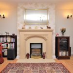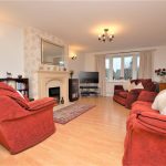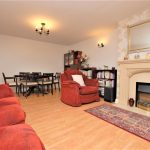 The spacious lounge/dining room has a wide bow window to the front and a focal fireplace with a living flame effect fire.