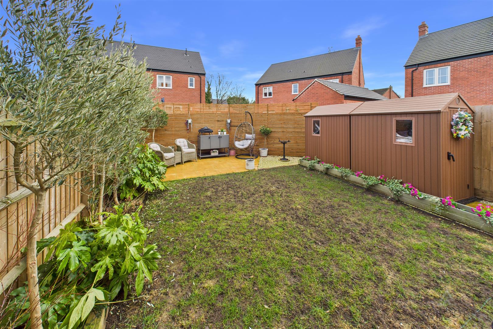 The rear garden is fully enclosed and has been thoughtfully landscaped to include a paved patio area adjacent to the property, a central lawn, raised borders with planting and a further seating area to the rear. A timber garden shed provides useful outdoor storage, and the garden offers an excellent balance of practicality and outdoor entertaining space.