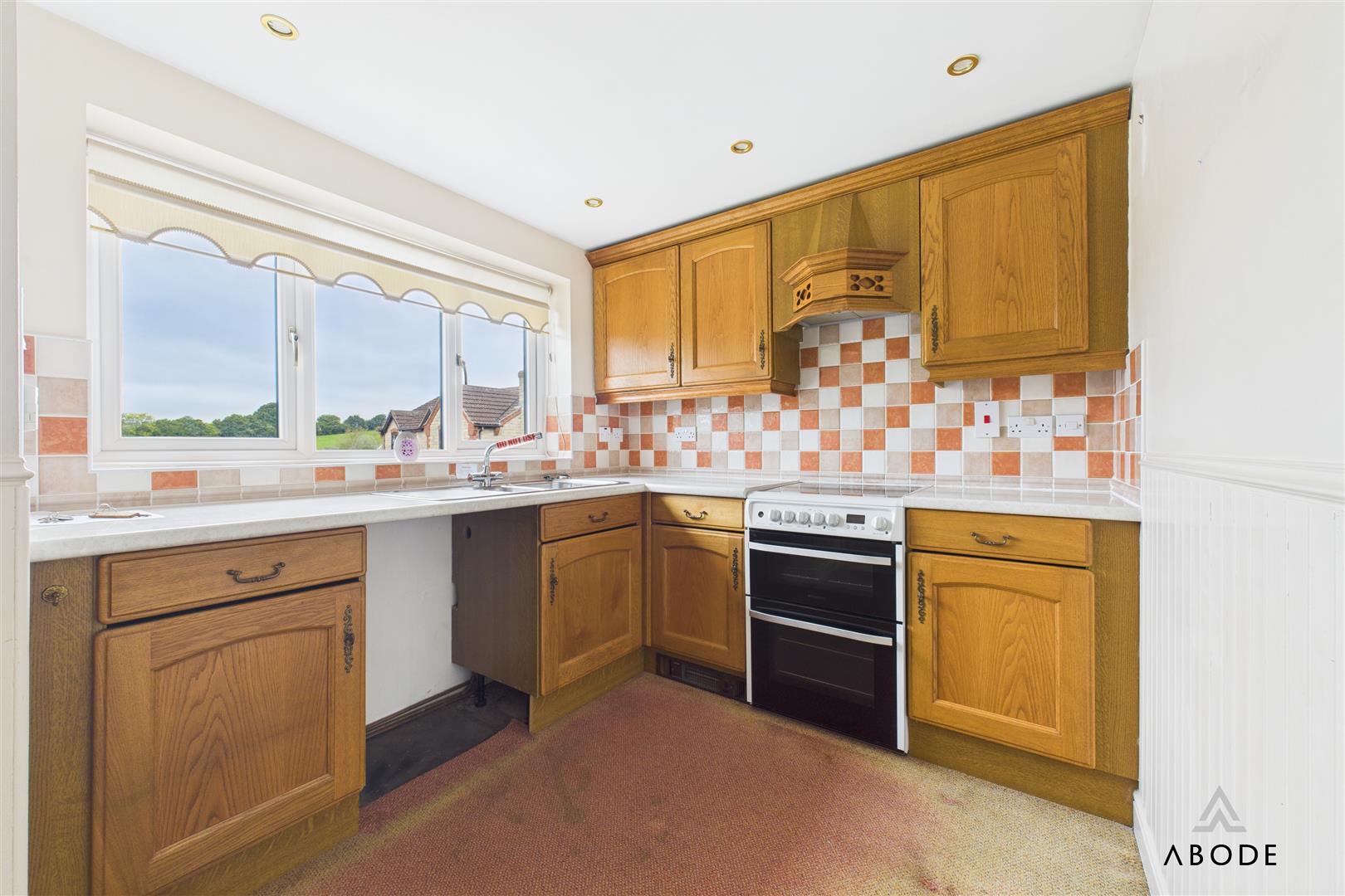 Situated to the front of the property, the kitchen offers a UPVC double-glazed window and a stylish range of matching wall and base units with complementary roll-top work surfaces and tiled splashbacks. Integrated appliances include a one-and-a-half bowl stainless steel sink with mixer tap, four-ring hob with oven and grill, and extractor hood. There is plumbing and space for freestanding under-counter white goods, along with a telephone point.