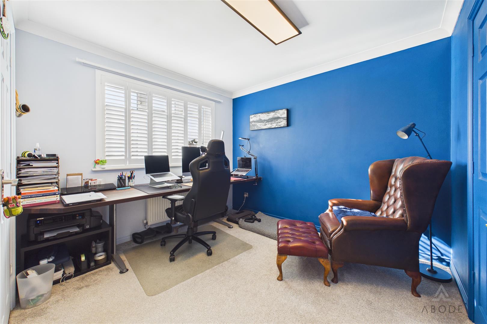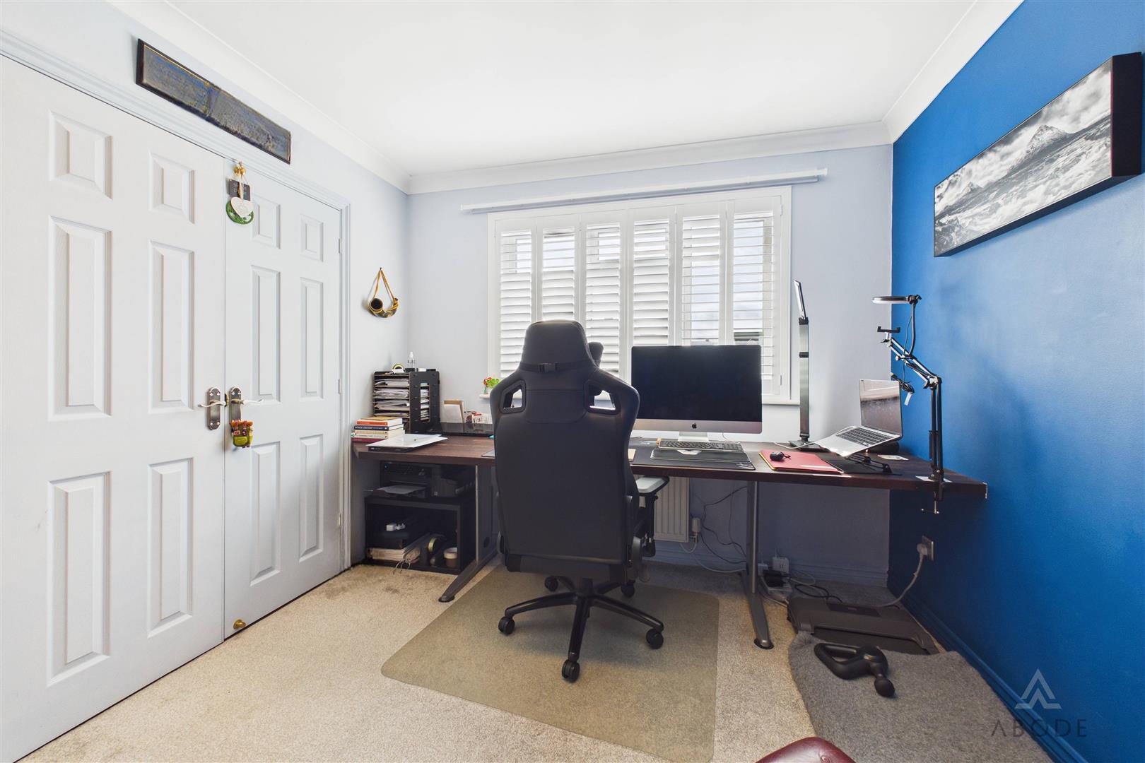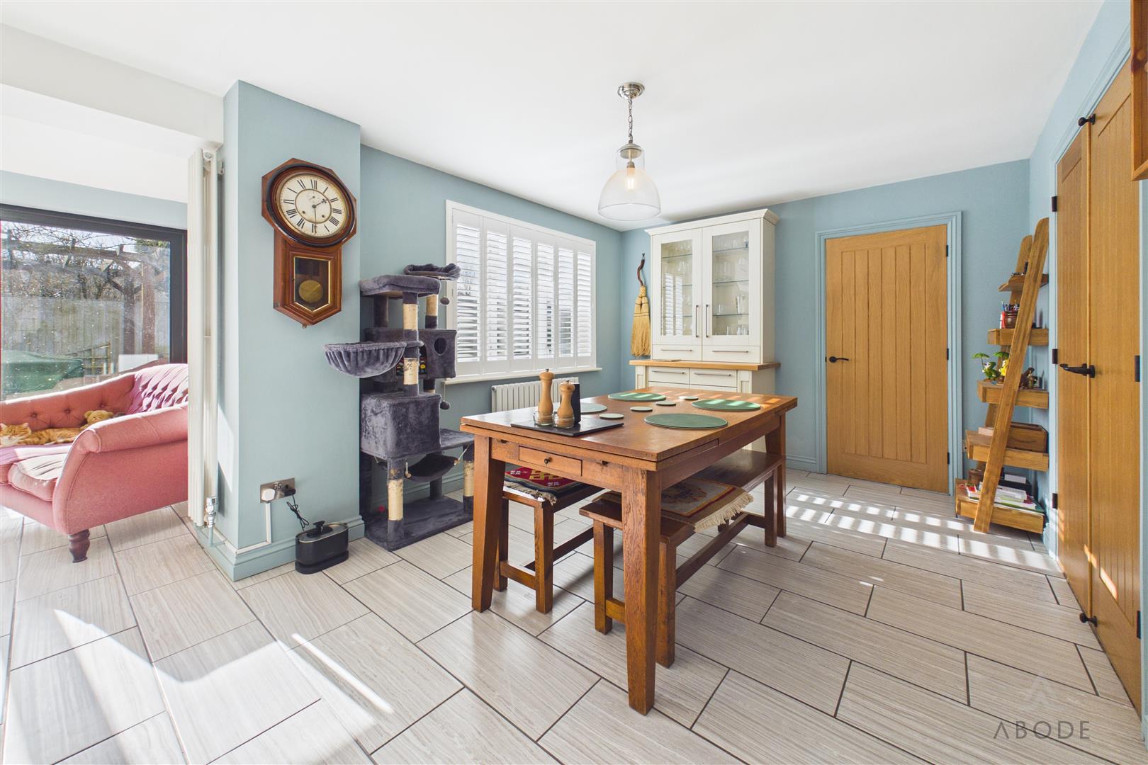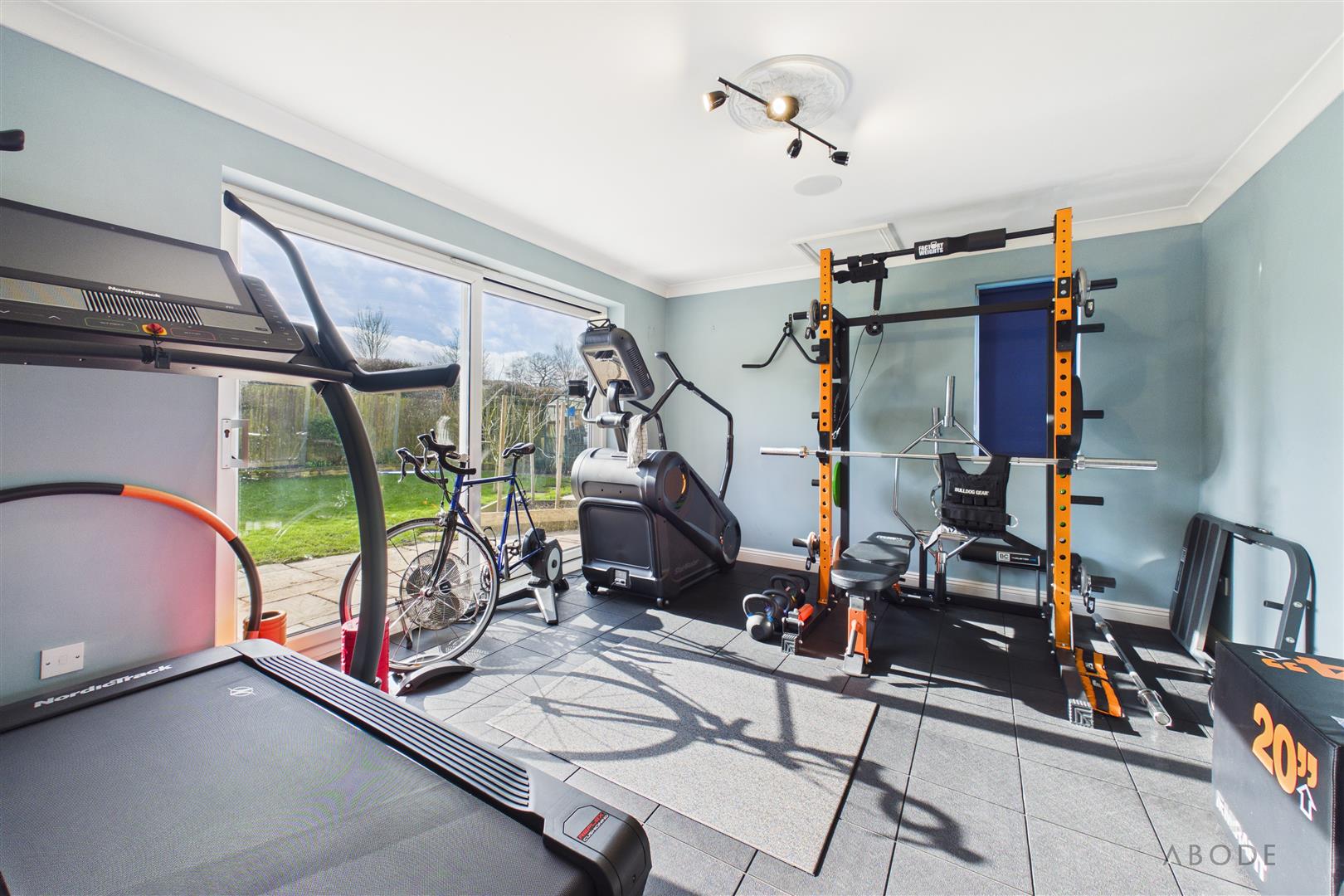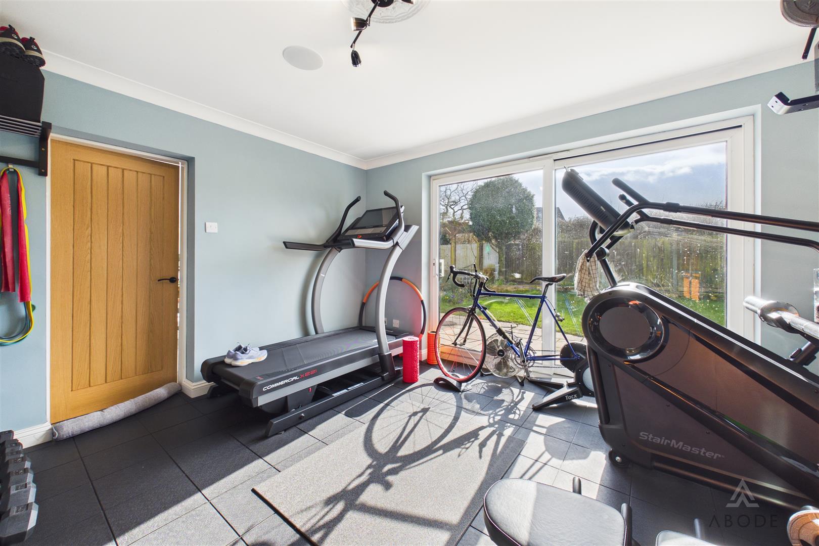 A versatile additional reception room with uPVC double glazed sliding doors opening onto the garden and a further side window, offering flexibility to suit a variety of needs. Currently utilised as a gym, it would equally serve as a home office, study, snug or playroom. Features include a loft hatch, central heating radiator and integrated Bluetooth ceiling speaker system.