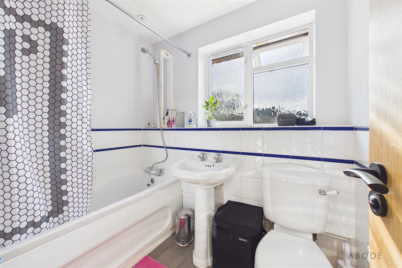Fitted with a three-piece suite comprising low-level WC, pedestal wash hand basin and panelled bath with shower over. Complementary wall tiling, chrome heated towel radiator, ceiling spotlights, extractor fan and a uPVC double glazed frosted window to the rear elevation complete this well-appointed family bathroom.
