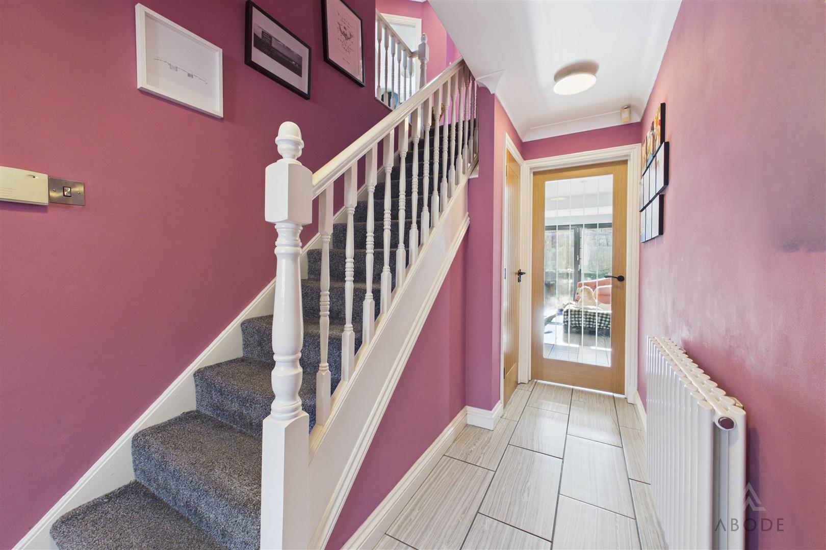 Accessed via a stylish composite front door with adjoining uPVC double glazed frosted glass panel, the welcoming hallway features complementary tiled flooring, a central heating radiator and a balustrade staircase rising to the first floor. A smoke alarm is fitted and internal doors lead to: