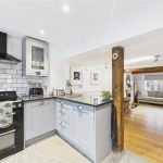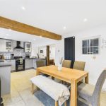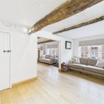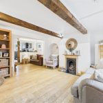 Beams, airing cupboard housing the combi boiler (newly fitted in 2024), central heating radiator and electronically controlled sky light over the galleried landing.