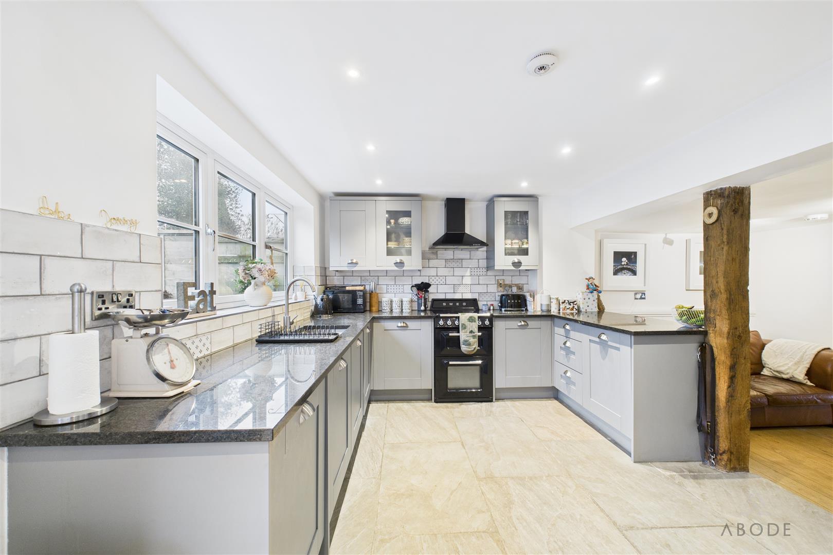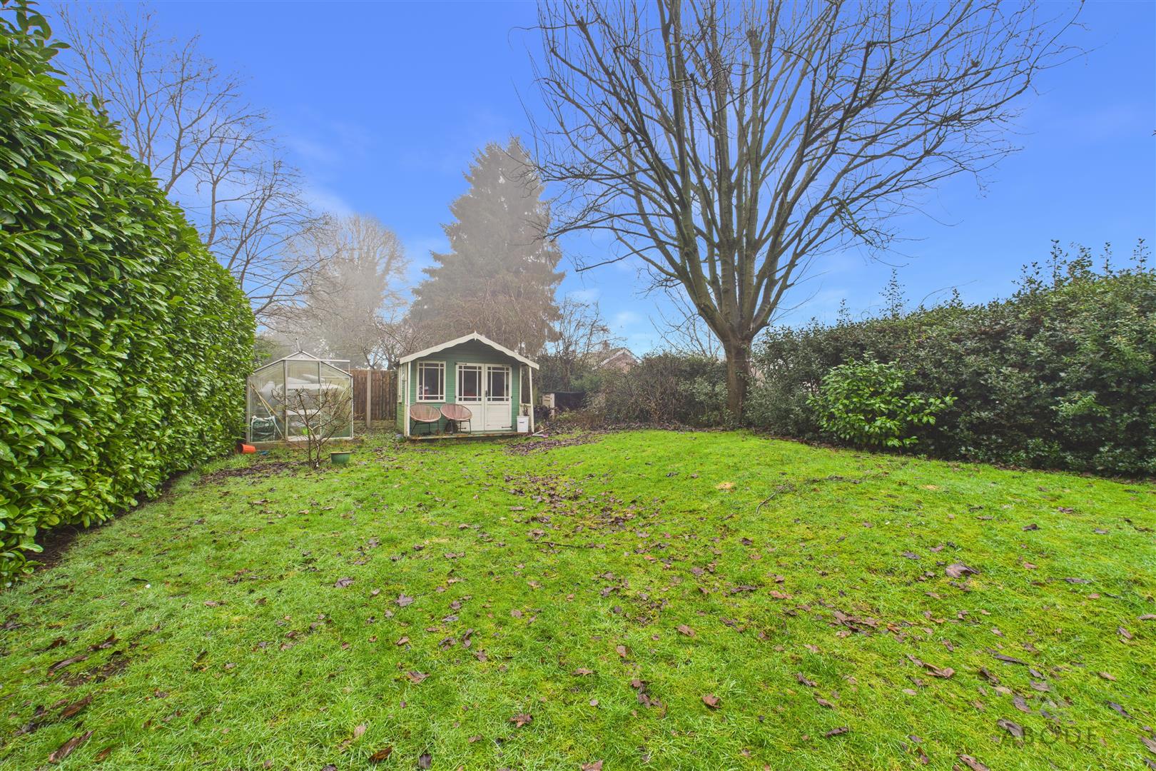 The large rear garden is enclosed and mainly laid to lawn, with mature trees and hedging. A generous patio area provides an ideal entertaining space with lighting, a summer house and greenhouse towards the end of the garden.