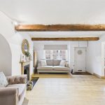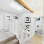 Beams, airing cupboard housing the combi boiler (newly fitted in 2024), central heating radiator and electronically controlled sky light over the galleried landing.