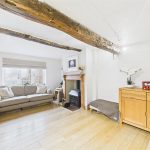 Double glazed window to the front elevation, wooden flooring, beams and fireplace with tiled hearth. Central heating radiator, storage cupboard and stairs leading up to the first floor.