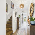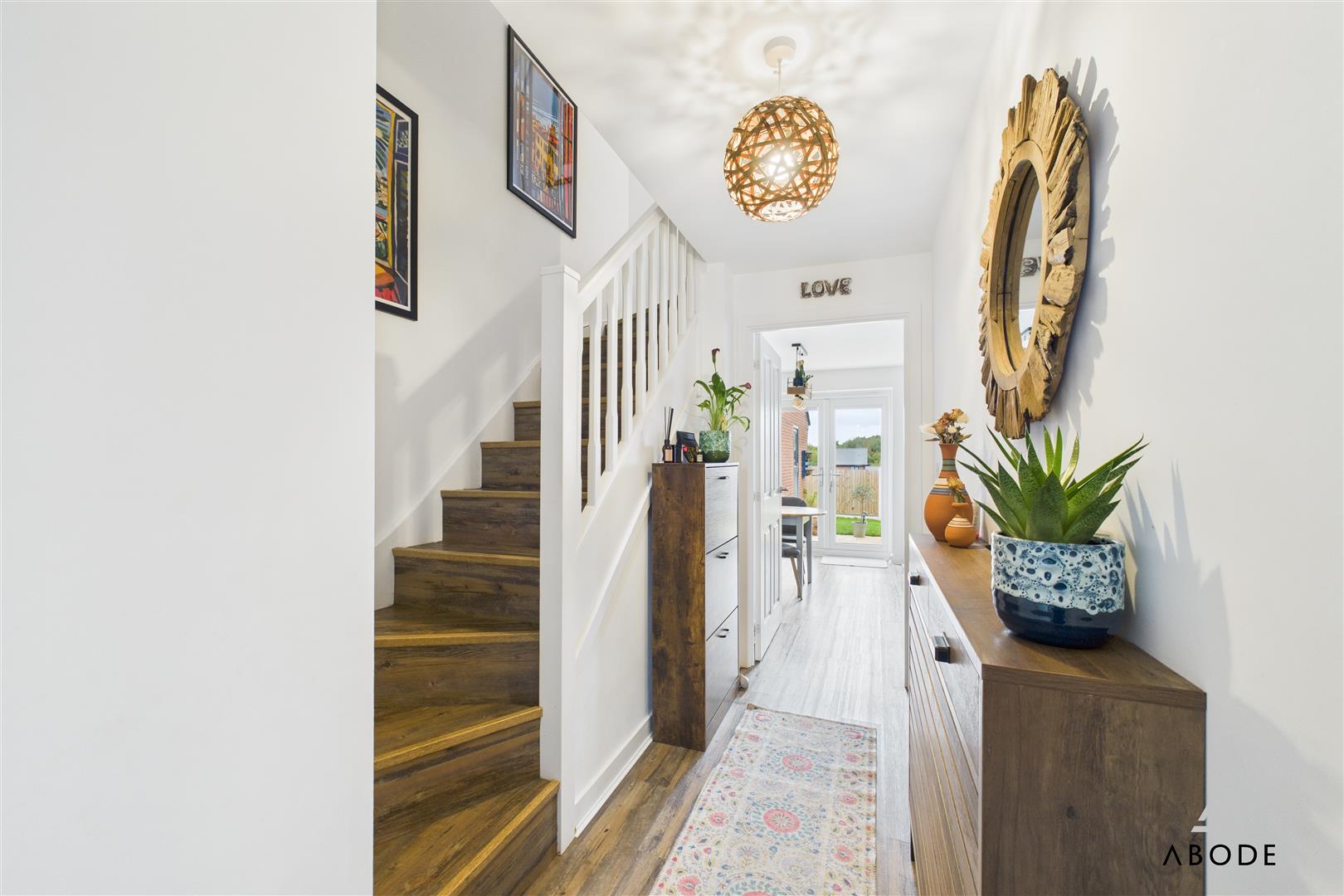 Composite door leading in from the front, central heating radiator and stairs leading up to the first floor.