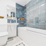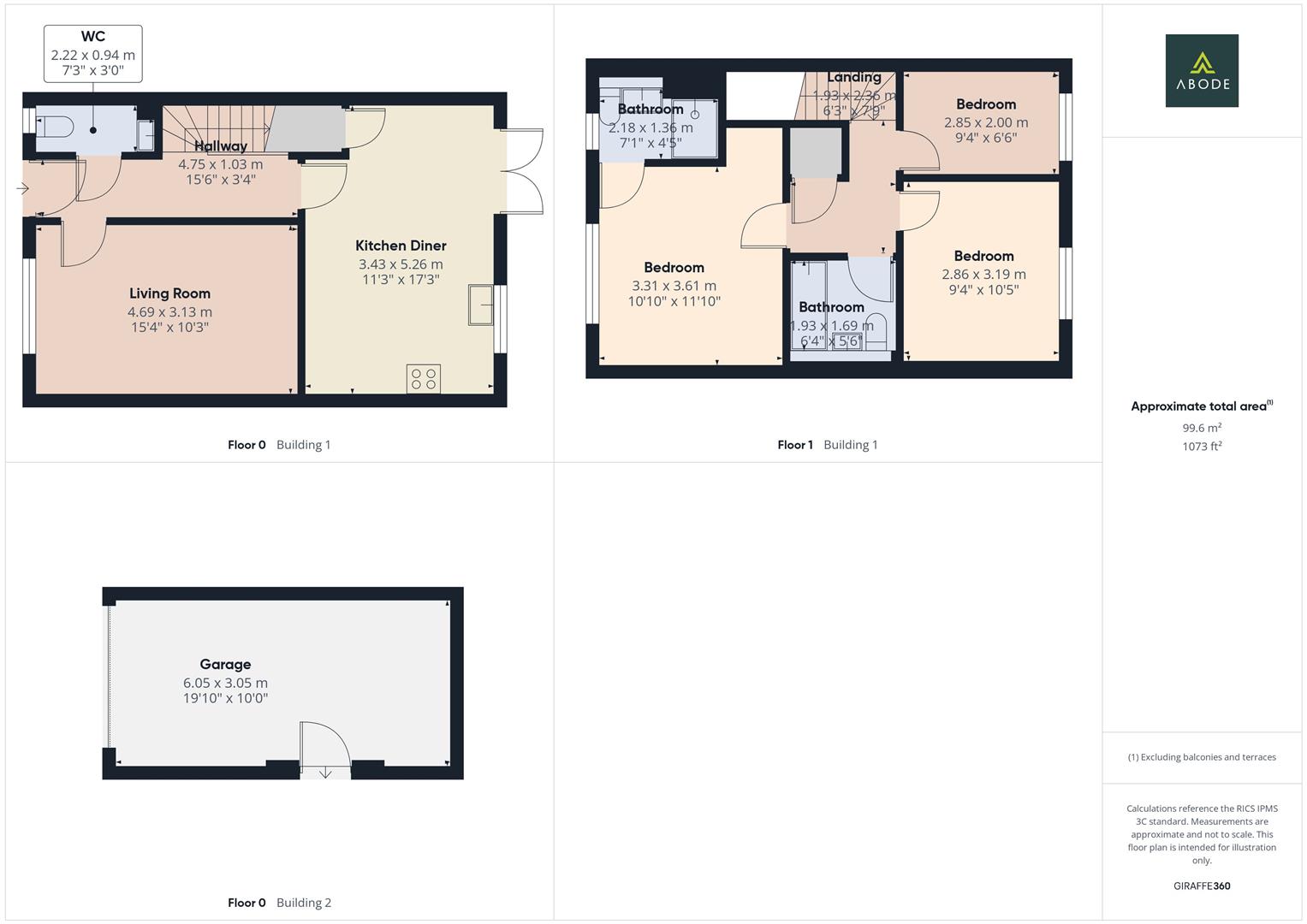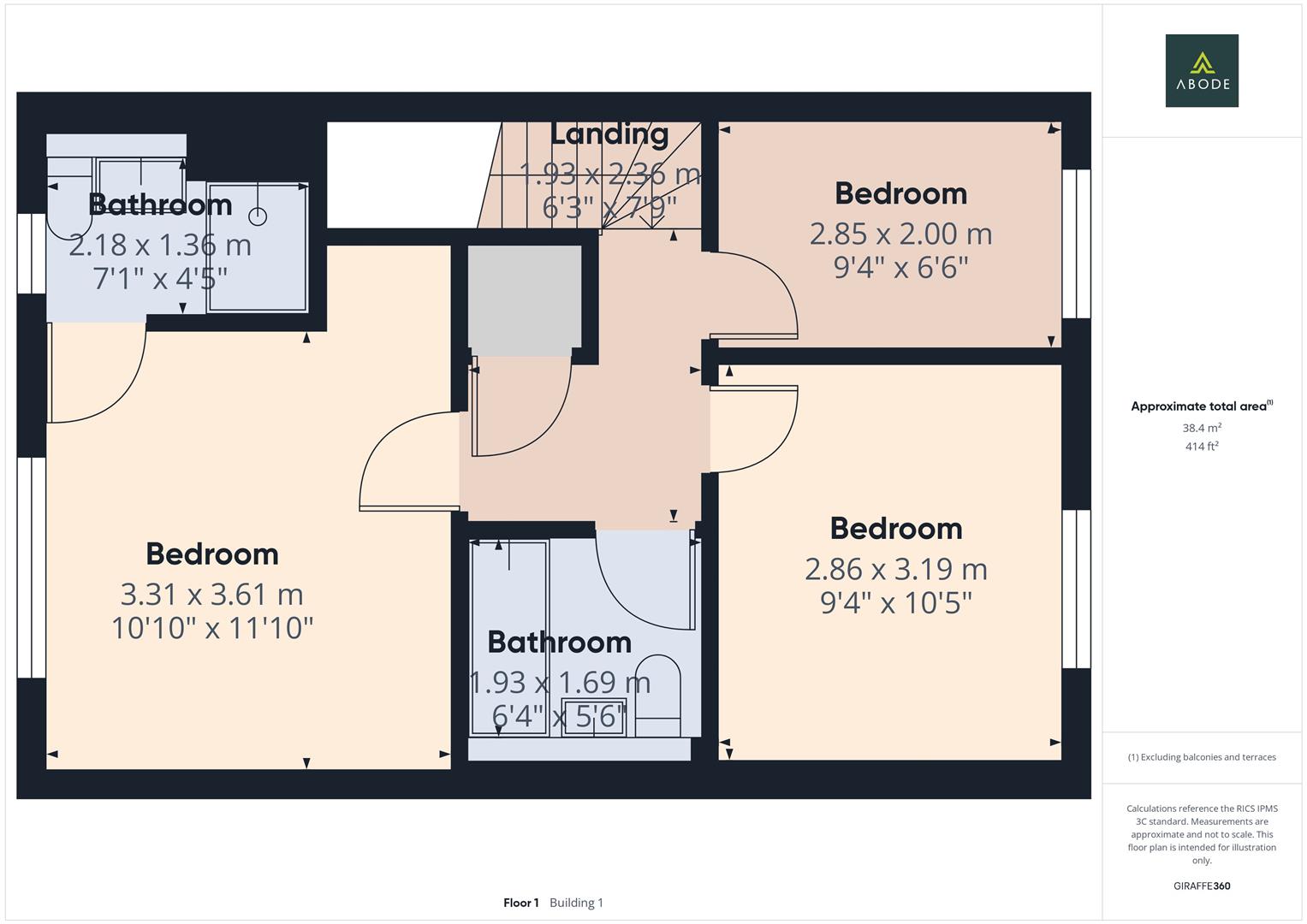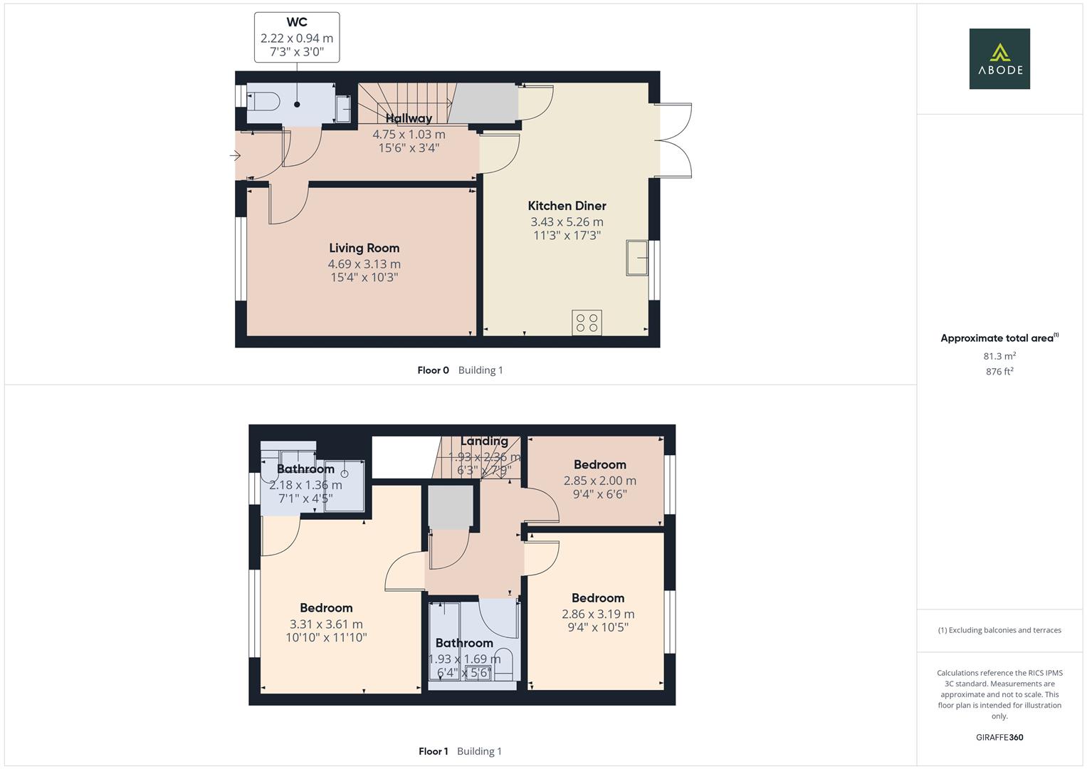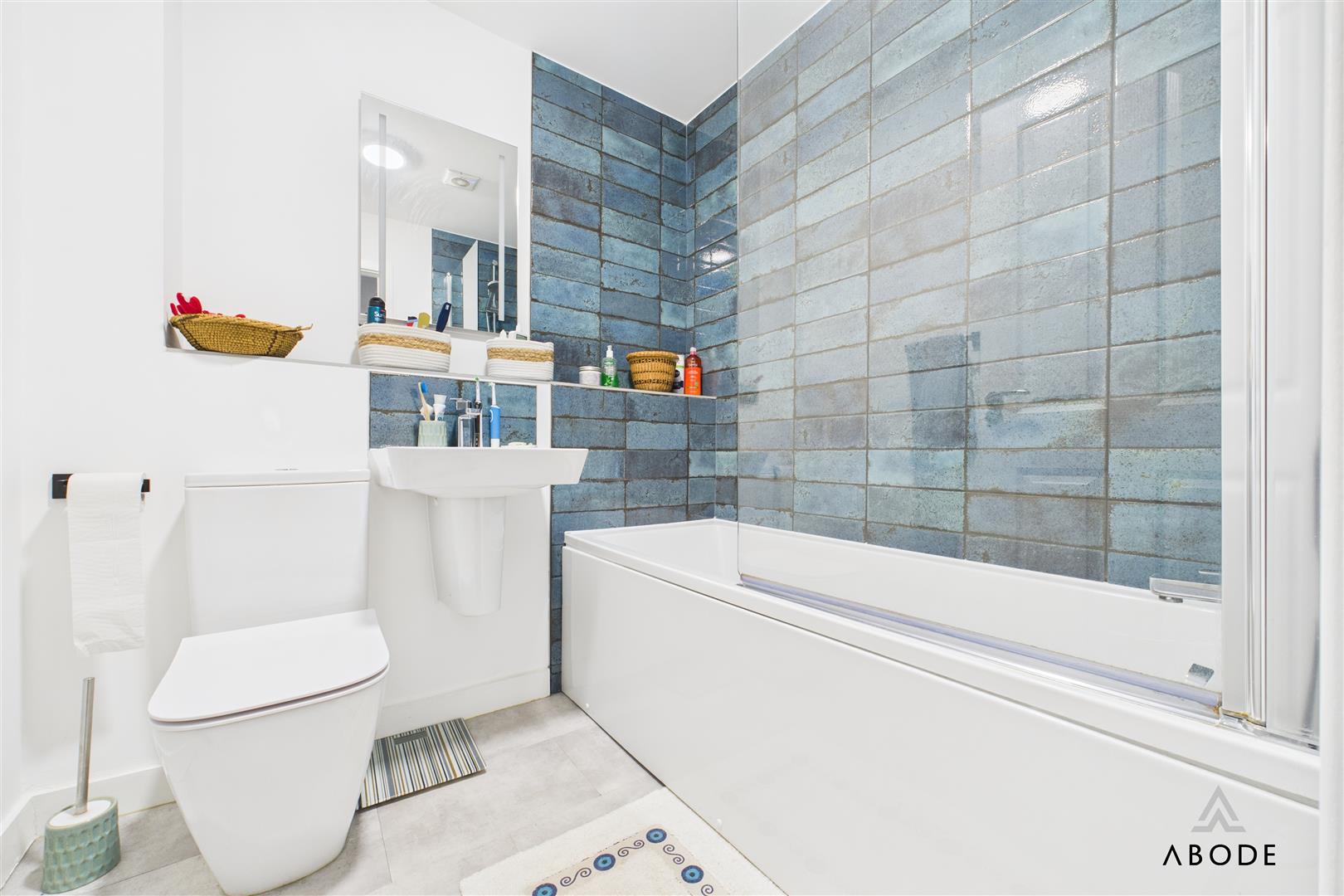 Modern suite comprising;- WC, wash hand basin and bath with shower over and glass shower screen. Partially tiled walls, extractor fan and central heating radiator.