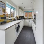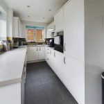 Fitted wall mounted, base and drawer units with work surfaces and a sink and drainer unit. Fitted oven and hob, integrated fridge freezer and dishwasher, plumbing and space for a washing machine. Under stairs storage cupboard, Upvc double glazed windows and a door to the garden.