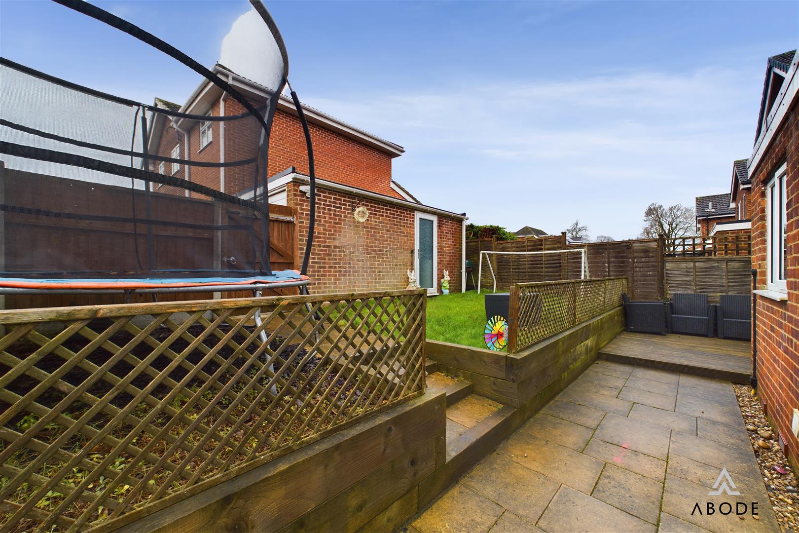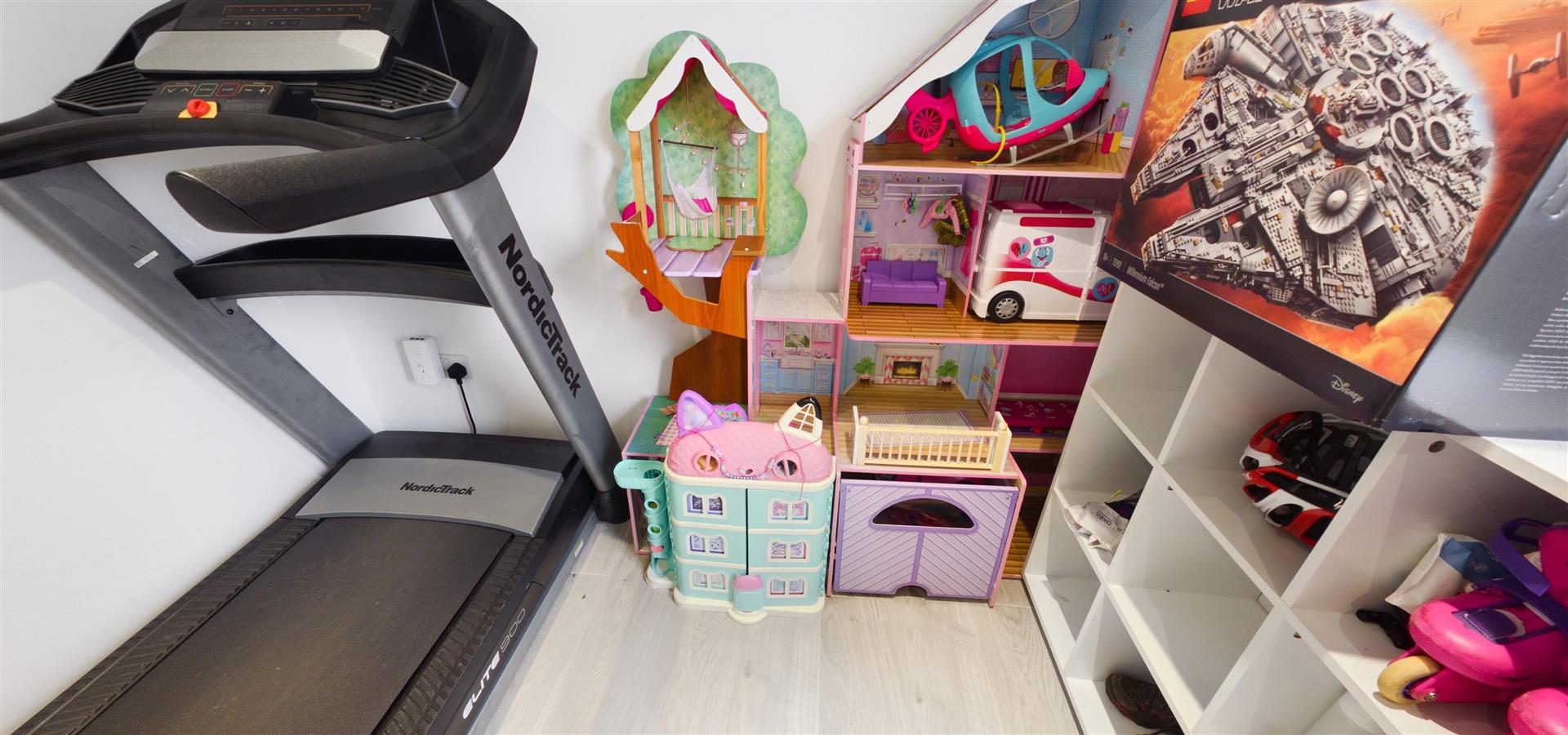 Front lawn, side drive to the garage with up and over door to the front stroage area. Gated access to the enclosed rear garden with a paved patio areas, lawn and a personal door into the rear converted part of the garage which is currently used as a home gym, would also be an office, playroom or bar.
