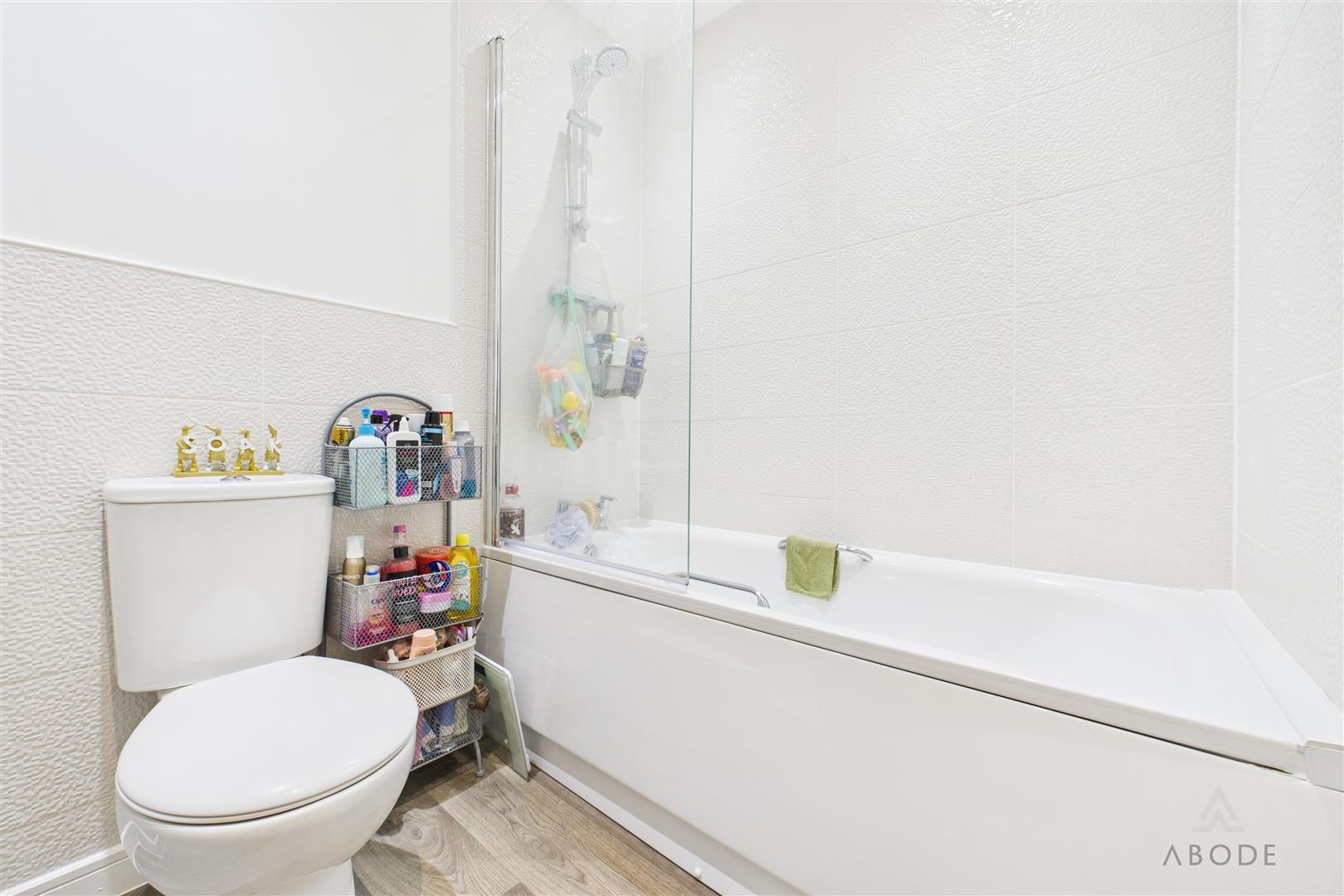 The family bathroom is fitted with a modern three-piece suite comprising a panelled bath with shower over, wash hand basin and low-level WC, finished with contemporary tiling and flooring.