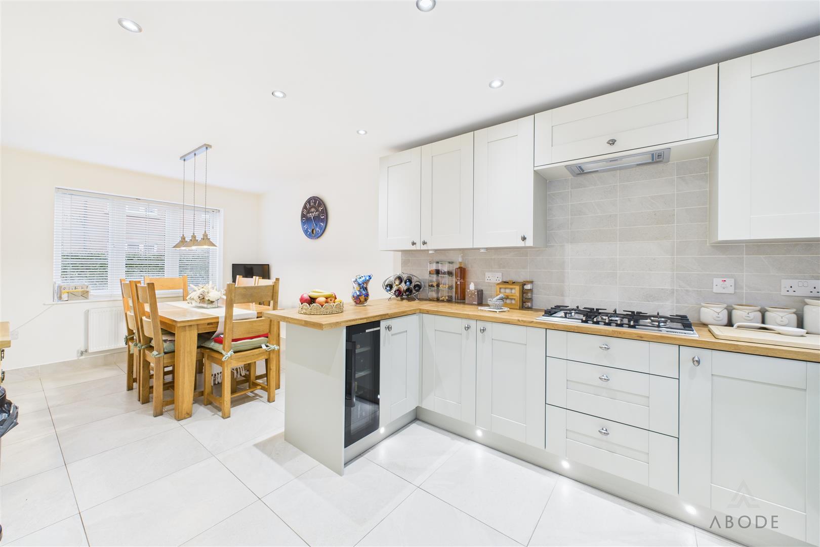 The accommodation is entered via a welcoming entrance hallway, which provides access to a ground floor WC and stairs rising to the first floor. To the right of the hallway is a generous living room, offering ample space for seating and enjoying a generous space for furniture, with double doors opening into the conservatory. The conservatory provides an additional reception space, ideal for relaxing or entertaining, with direct access to the garden. The kitchen diner is fitted with a range of matching wall and base units with complementary work surfaces and offers space for a dining table, making it a practical and sociable room. A separate utility room is located off the kitchen and provides further storage, appliance space and an external door to the garden.