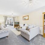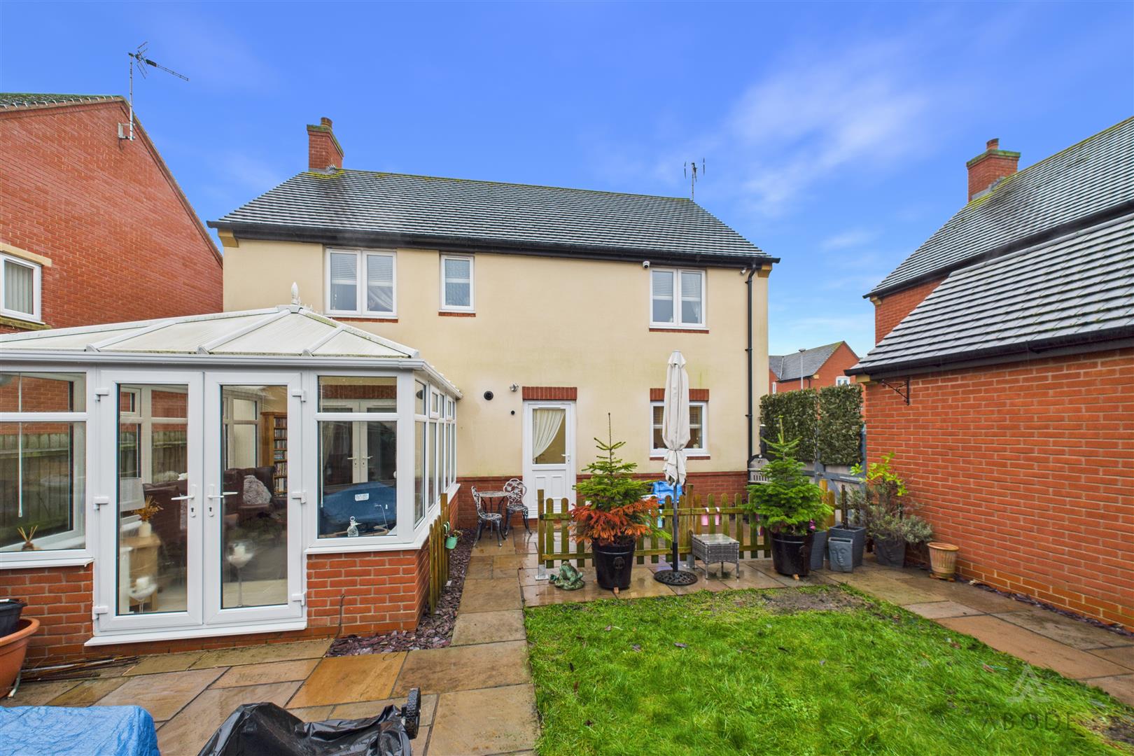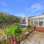 To the front, the property features a driveway providing off-street parking and access to the detached garage. The rear garden is enclosed and offers a combination of paved patio seating areas and a lawn, creating an ideal outdoor space for both entertaining and everyday use. The garden enjoys a good degree of privacy and is well suited to families or those who enjoy spending time outdoors.