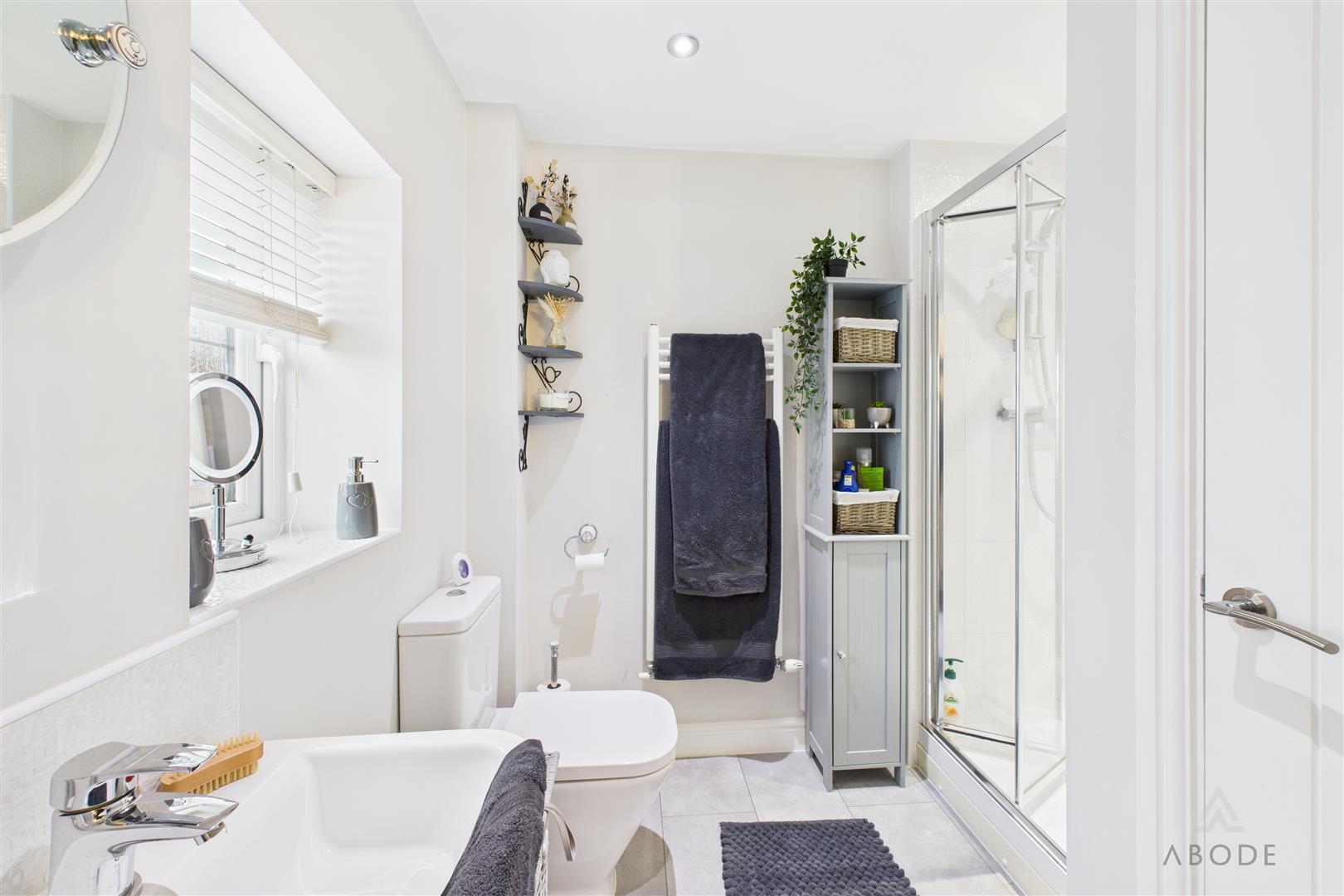 The first-floor landing gives access to four well-proportioned bedrooms and the family bathroom. The master bedroom is a spacious double room and benefits from fitted storage and a modern en-suite shower room. Bedrooms two and three are both comfortable double rooms, while bedroom four is a good-sized single room, suitable for a child’s bedroom, home office or dressing room. The family bathroom is fitted with a contemporary suite comprising a bath with shower over, wash hand basin and WC.