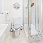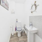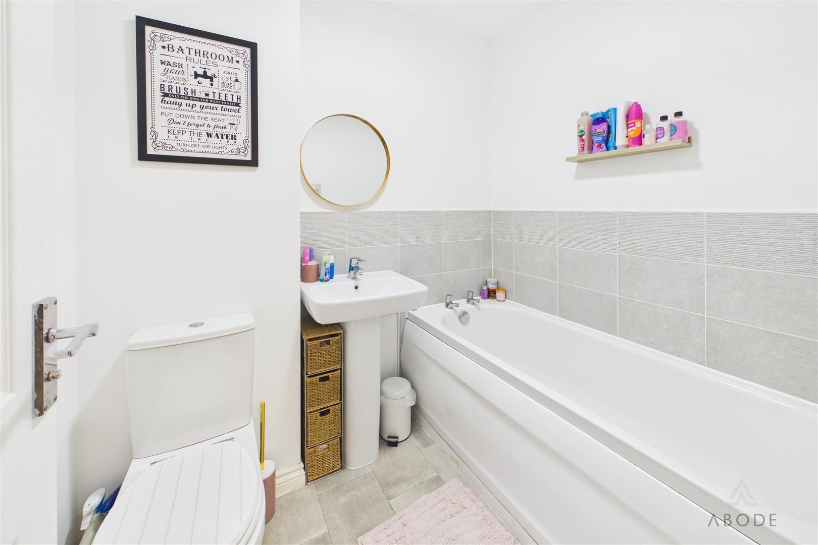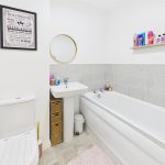 Panel enclosed bath, low flush wc, wash hand basin, radiator.