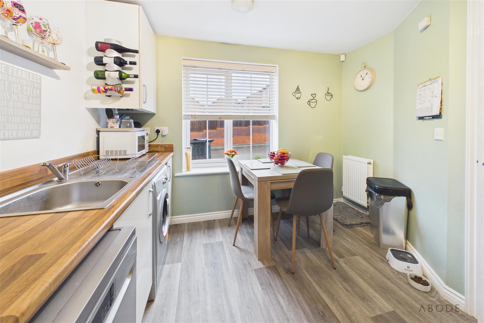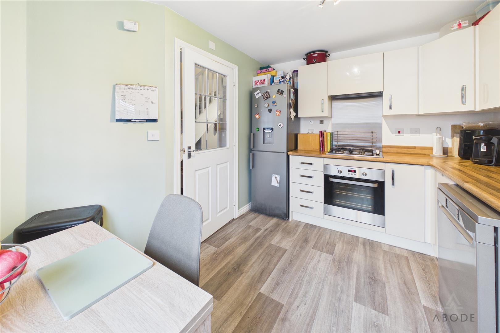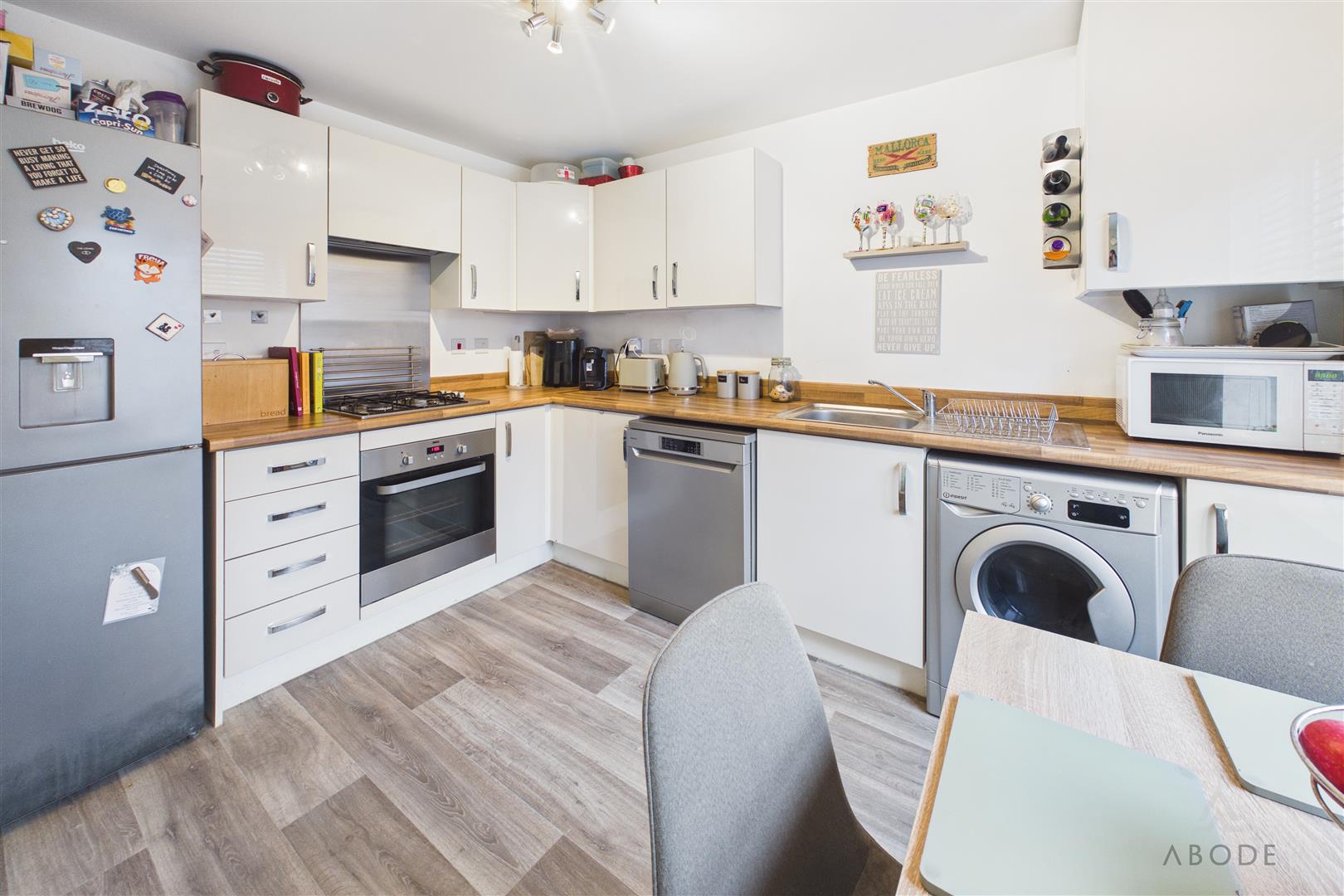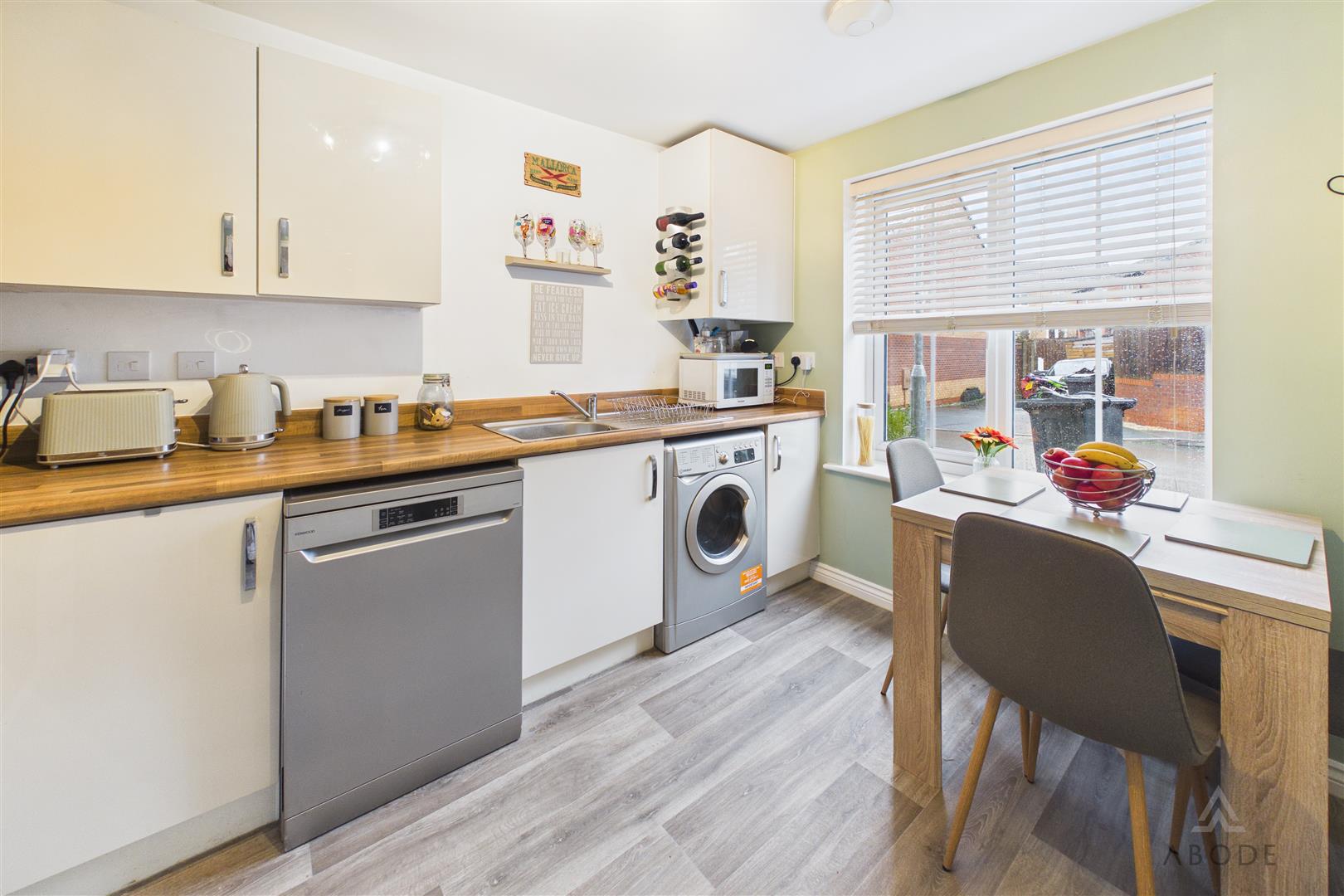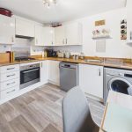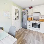 Fitted wall mounted, base and drawer units with work surfaces and a sink and drainer unit. Fitted electric oven and a gas hob, plumbing and space for a washing machine and dishwasher. Space for a fridge freezer, radiator and a upvc double glazed window.