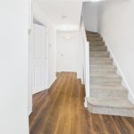 Entrance door into the hall with stairs to the first floor, radiator, under stairs storage cupboard and doors to -