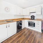 Fitted wall mounted, base and drawers units with work surfaces and a sink and drainer unit. Fitted electric oven, gas hob and extractor hood. space for a fridge, freezer, plumbing and space for a washing machine. Upvc double glazed window to the front, and a radiator.