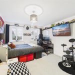 Loft access, UPVC double glazed window to the side elevation and storage cupboard.