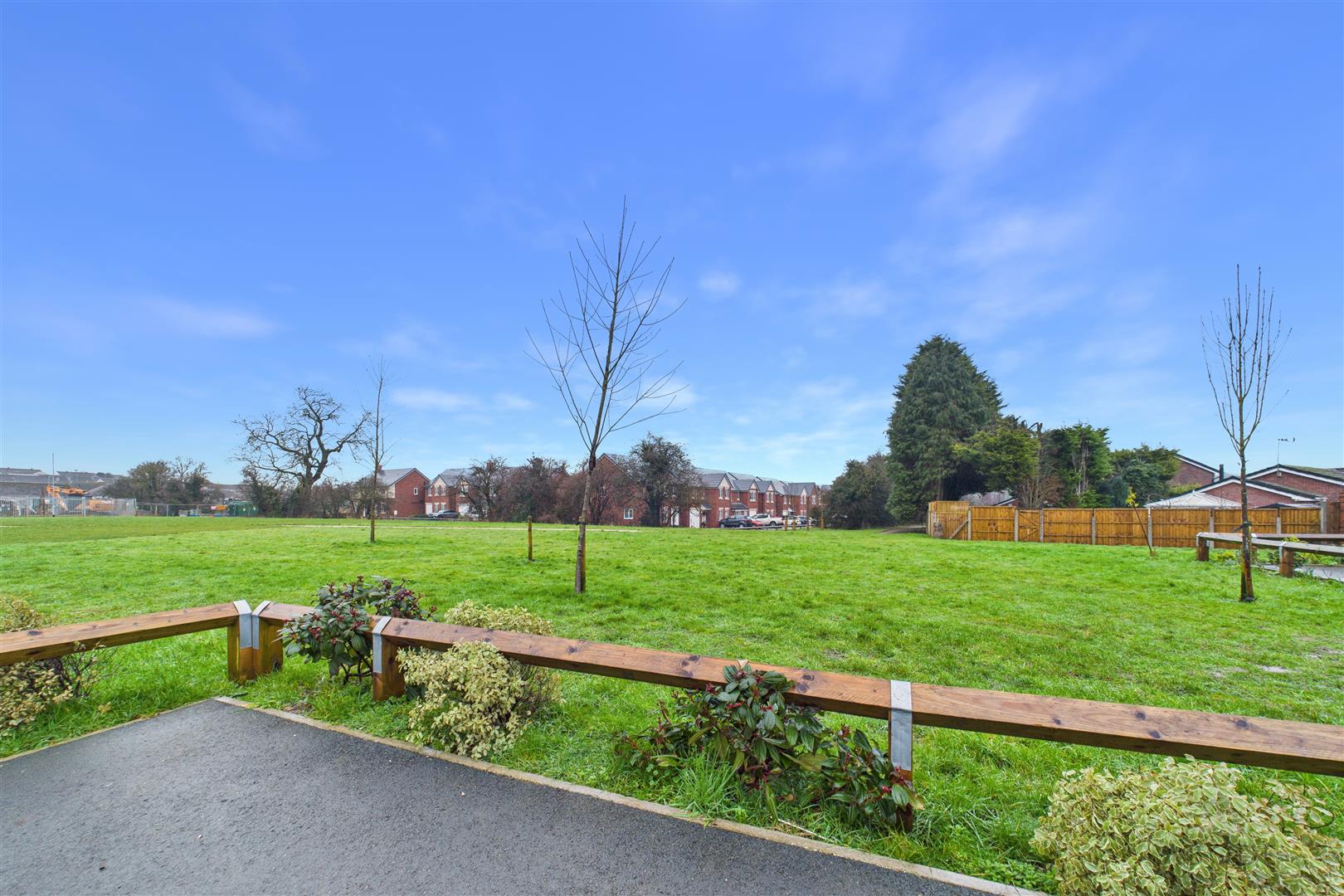 Front lawned area and block paved driveway providing off road parking for two vehicles.
